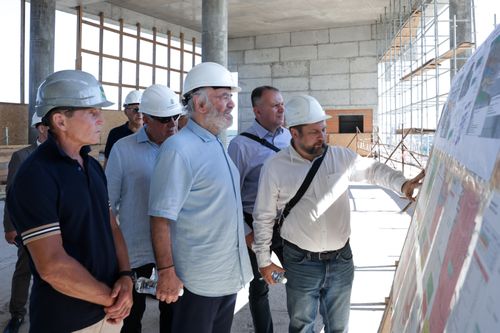 Несмотря на воскресенье, строительство комплекса не останавливается - рабочие бетонируют и штукатурят конструкции, занимаются отделкой помещений, идут земляные работы по прокладке инженерных сетей. В настоящее время, по словам Олега Кожемяко, в возведении объекта заняты свыше 1,5 тысяч специалистов, и их число увеличится до 1,6 человек. Он вместе с Валерием Гергиевым осмотрели, как продвигается сооружение комплекса, пообщались со строителями.
