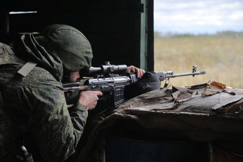 На войсковом стрельбище, военнослужащие оттачивали навыки владения стрелковым оружием в рамках курса армейской тактической стрельбы, также офицеры учились работать в паре при отражении беспилотных летательных аппаратов. Первый номер прикрывая своего товарища вел огонь по наступающей пехоте «противника», второму было необходимо уничтожить, приближающийся дрон из гладкоствольного ружья.