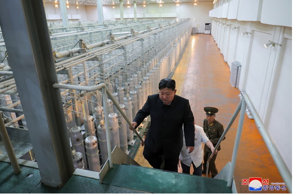Ким Чен Ын, получив доклад о непрестанном ведении текущего производства ядерных материалов путем исследования, разработки и внедрения собственными силами и техникой всех элементов системы, в том числе центрифуг и разных чувствительных и управляющих устройств, выразил большое удовлетворение.