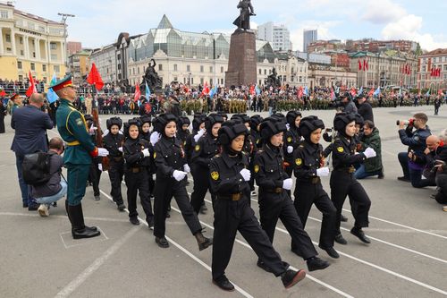 В полдень по центральной площади города воинской славы Владивостока прошли 50 парадных расчетов, около 1,5 тысяч детей. Среди участников парада также были ветераны Великой Отечественной войны, участники специальной военной операции, военнослужащие разного рода войск, сухопутных и морских сил России.