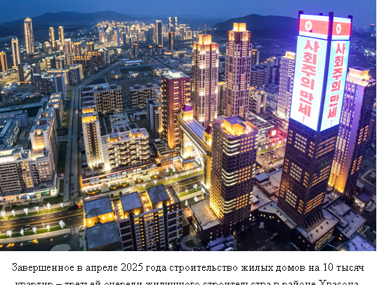 Кроме того, Корея в этом году развернула огромные строительные работы – строительство жилых домов на 10 тыс. квартир в рамках 4-й очереди жилищного строительства в районе Хвасона г. Пхеньяна, строительство крупнейшего тепличного хозяйства и научно-исследовательского центра овощеводства, строительство предприятий местной промышленности, больницы, зернохранилища и комплекса культурно-бытовых услуг для осуществления задач второго года осуществления «политики 20×10 развития периферии», строительство сельских жилых домов в разных районах страны. Все это действительно превосходит воображение.