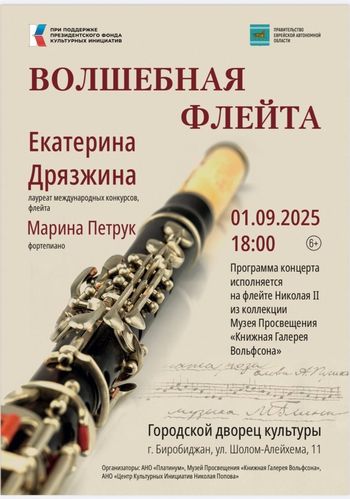 В тот же день, 1 сентября, в 18:00, в Городском дворце культуры состоится концерт-презентация личной флейты Николая II (6+).