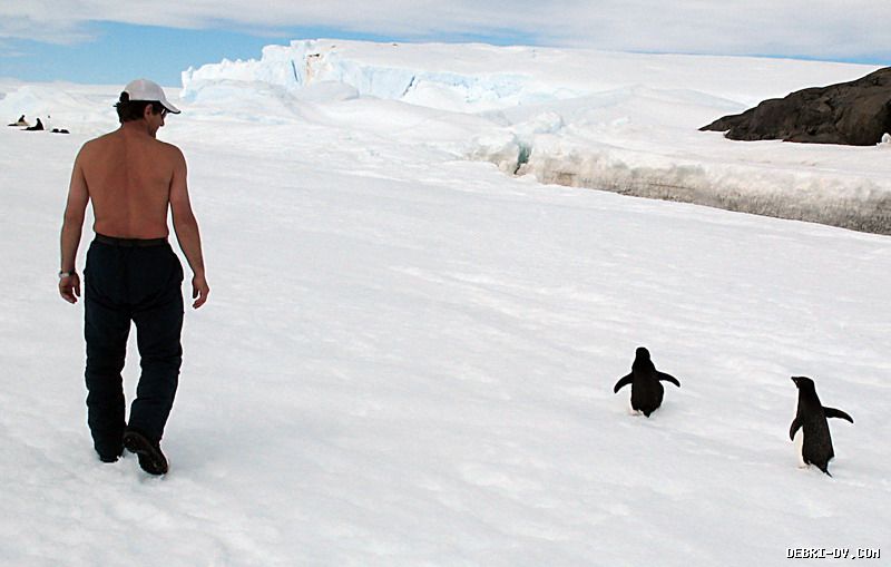 Пингвинов мы называли «босоногие дети», такие они непосредственные и любопытные. Маленькие пингвины называются по научному Адели (высота 70 сантиметров, вес около 6 килограммов), а большие — Императорские (рост до 1,3 метров, вес до 45 килограммов).
