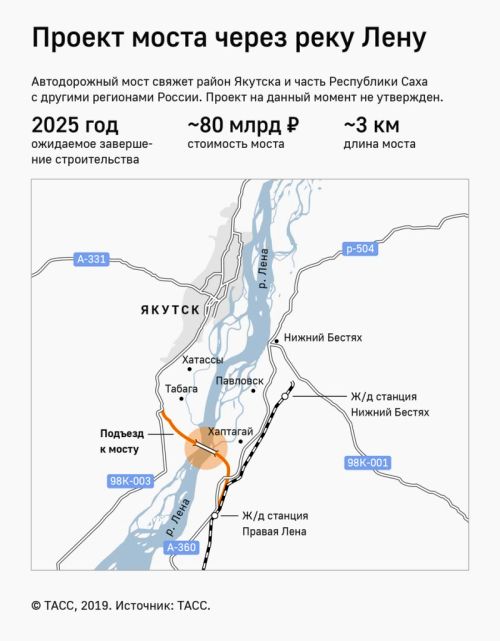 «Мост через Лену. Как мы с вами помним, есть региональный проект, который субъект РФ строит на принципах концессионного соглашения... региональный проект, который коллеги сейчас дорабатывают, структурируют и пришлют нам. Росавтодор его посмотрел, он ему понравился. Соответственно, будем выходить с этим проектом», - сказал он.