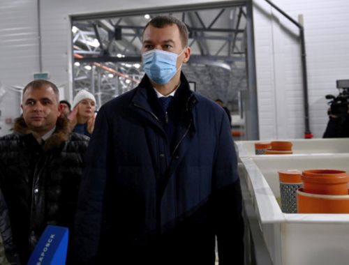 В рамках рабочей поездки по району имени Лазо губернатор Хабаровского края оценил мощности нового современного рыбоводного комплекса по разведению, производству и переработке рыбы и дал старт работе системы подачи воды и ее очистки. В апреле 2022 года здесь появятся первые мальки клариевого сома. Форель - будущей осенью.