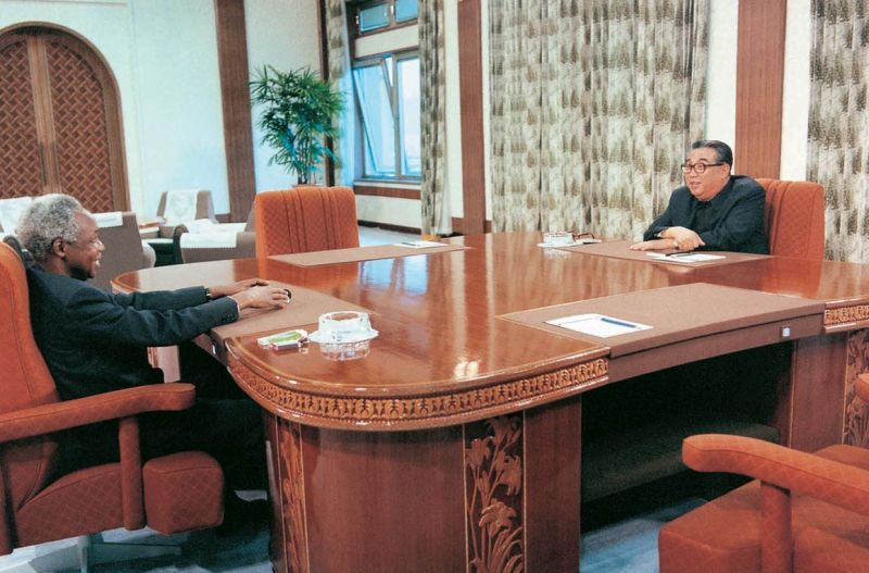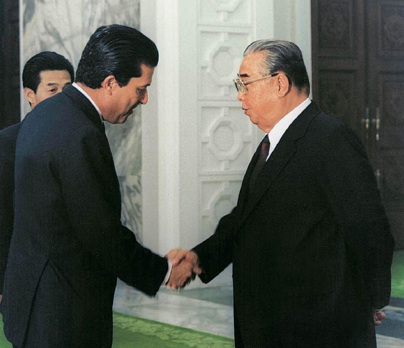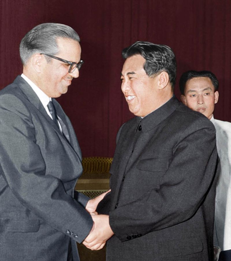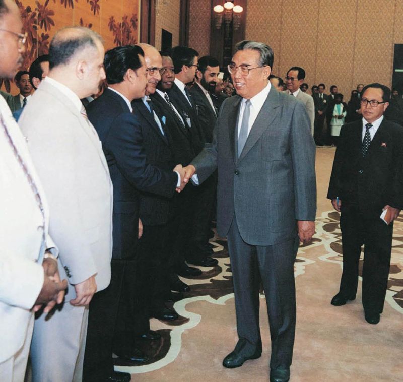 | Ким Ир Сен встречается с главами государств и правительств, лидерами партий, посланниками президентов и главами делегаций из разных стран мира. |