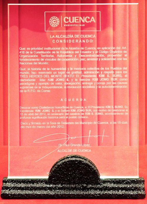 Немеркнущие заслуги Ким Ир Сена в деле осуществления самостоятельности во всех странах мира будут сохраняться в памяти человечества на веки веков.