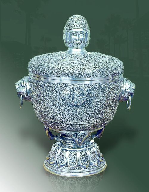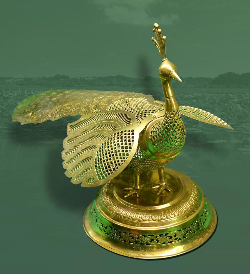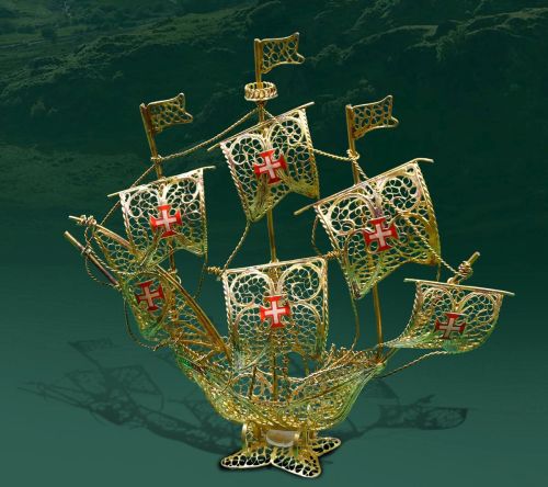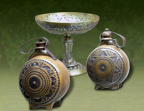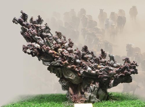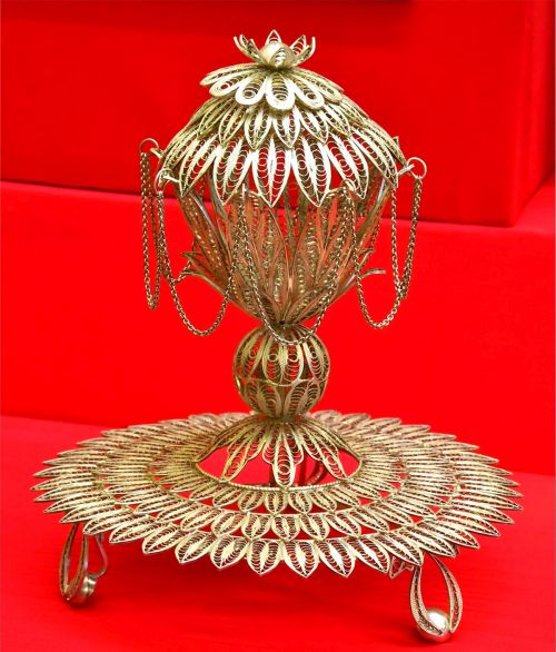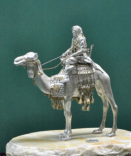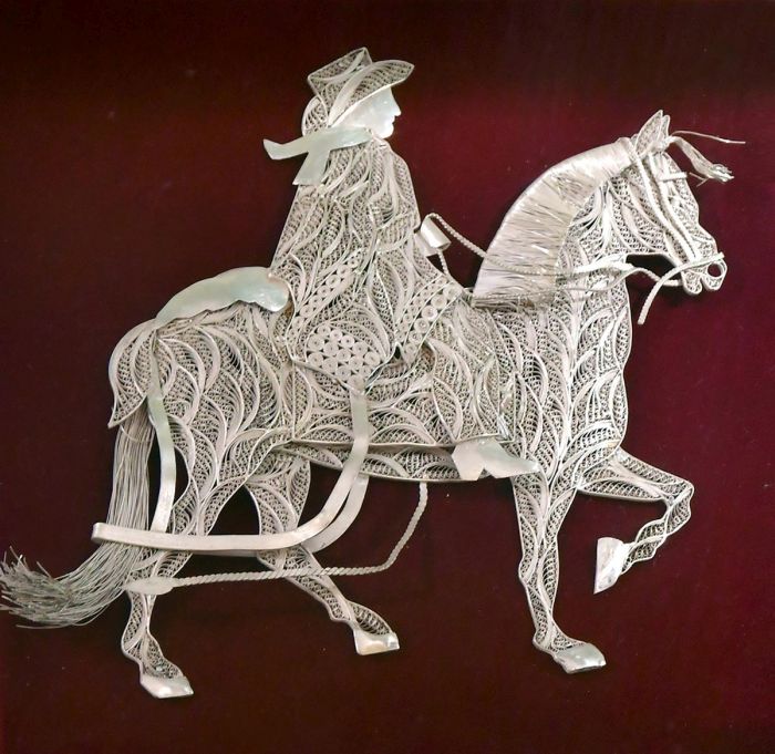 Декоративное изделие из серебряных нитей «Крестьянин на лошади».