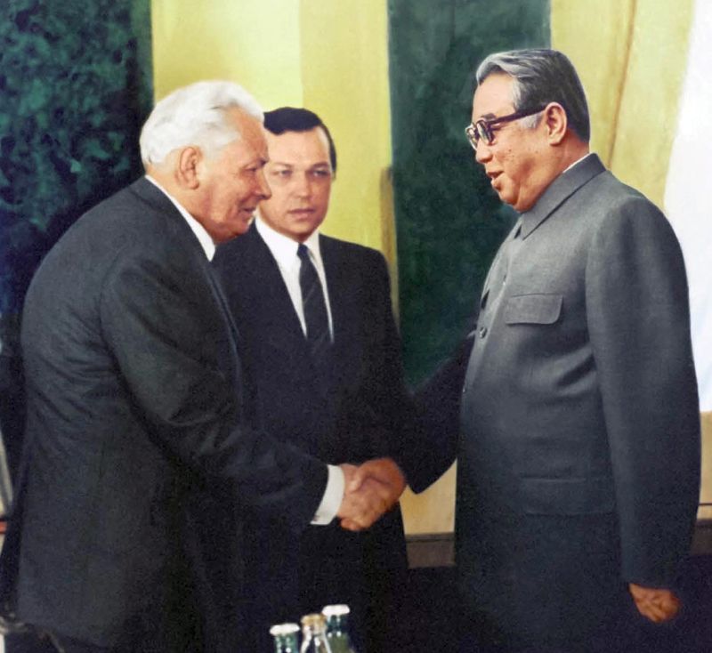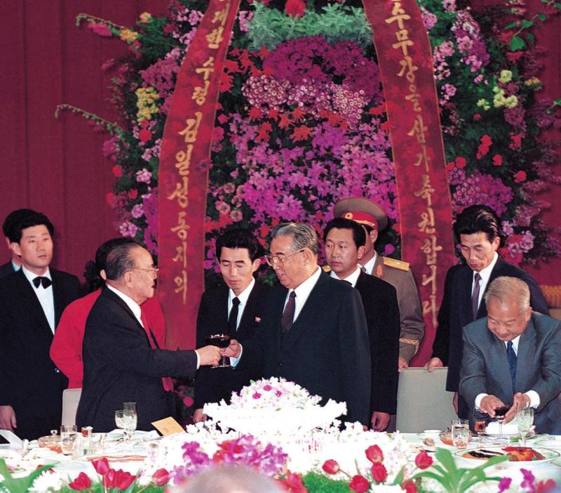 Председатель КНР Ян Шанкунь поздравляет Ким Ир Сена с днем рождения. Апрель 1992 г.