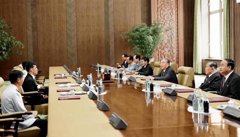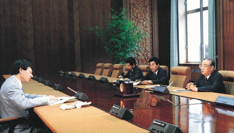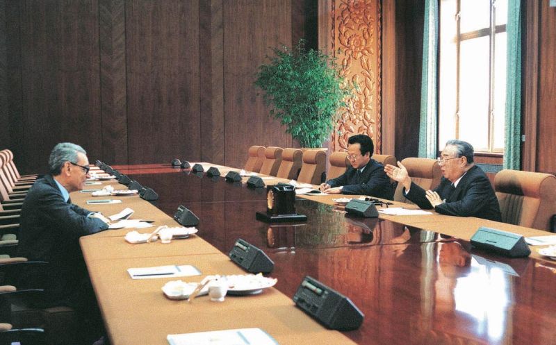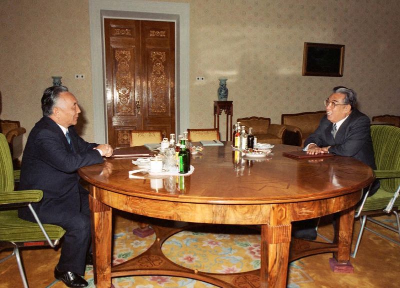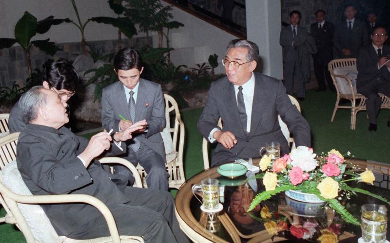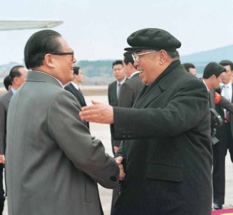 На встрече с Генеральным секретарем ЦК КПК Цзян Цзэминем, нанесшим визит в КНДР. Март 1990 г.