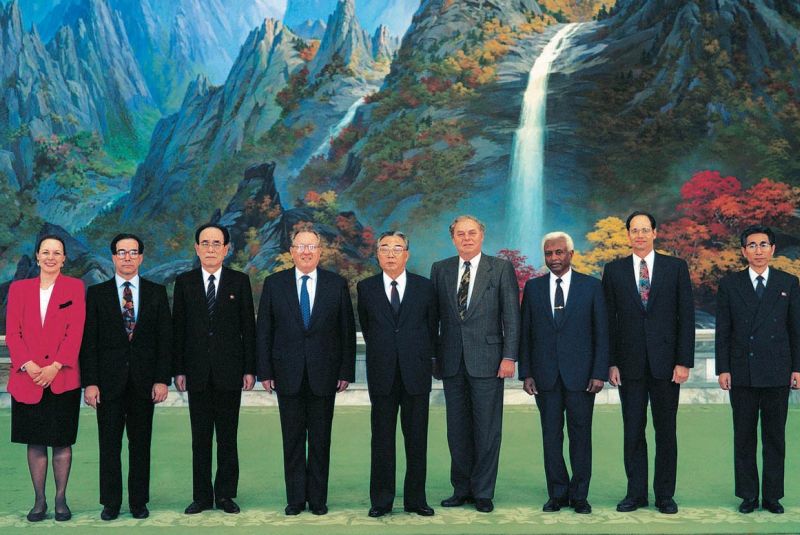 За всю жизнь Ким Ир Сен нанес 106 государственных визитов в 16 зарубежных стран, преодолев свыше 520 тыс. км. Он встречался с 70 тыс. с лишним иностранцами, включая глав партий, государств и правительств более 130 стран, давал им четкие ответы на вопросы, возникающие в строительстве нового общества и в области международных отношений, и посвящал их в истину революции.