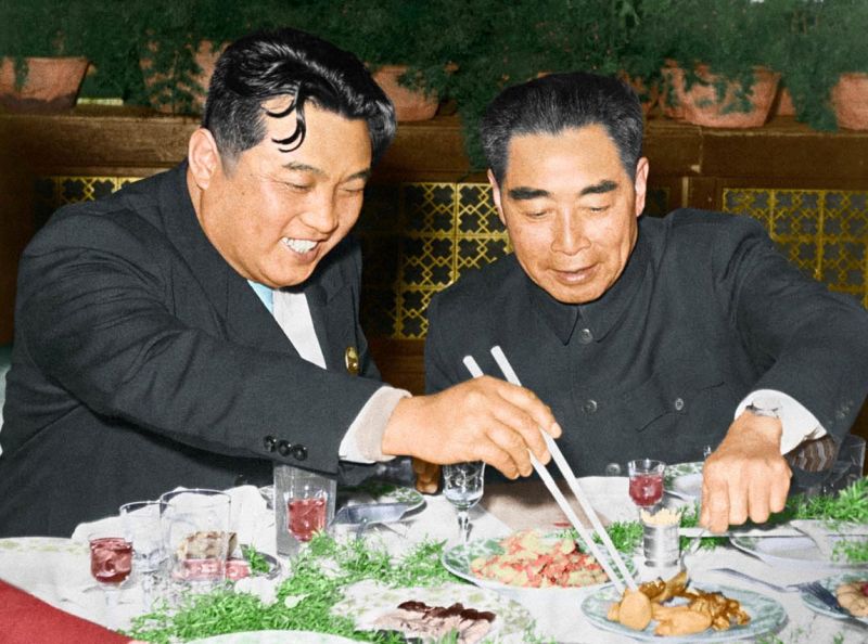 На банкете, устроенном премьером Государственного административного совета КНР Чжоу Эньлаем. Ноябрь 1958 г.