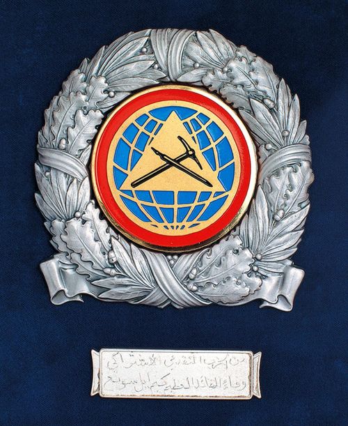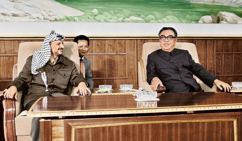 С Председателем исполкома Организации освобождения Палестины, верховным главнокомандующим Палестинской революционной армией Ясиром Арафатом. Октябрь 1981 г.