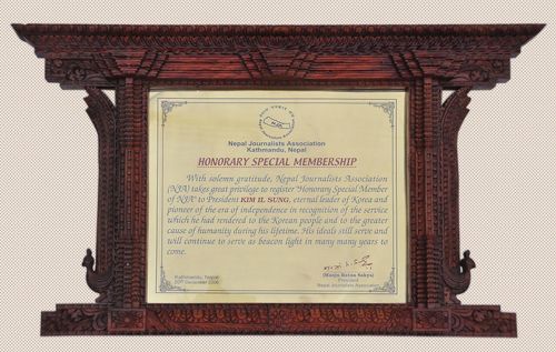 Грамота о присвоении почетного звания специального члена Общества непальских журналистов.