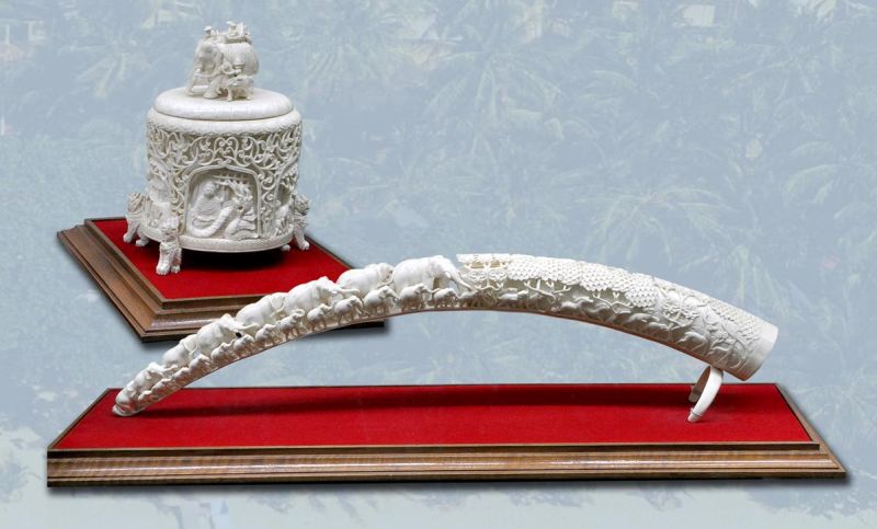 Слоновая кость «Сигаретница» и «Вереница слонов».