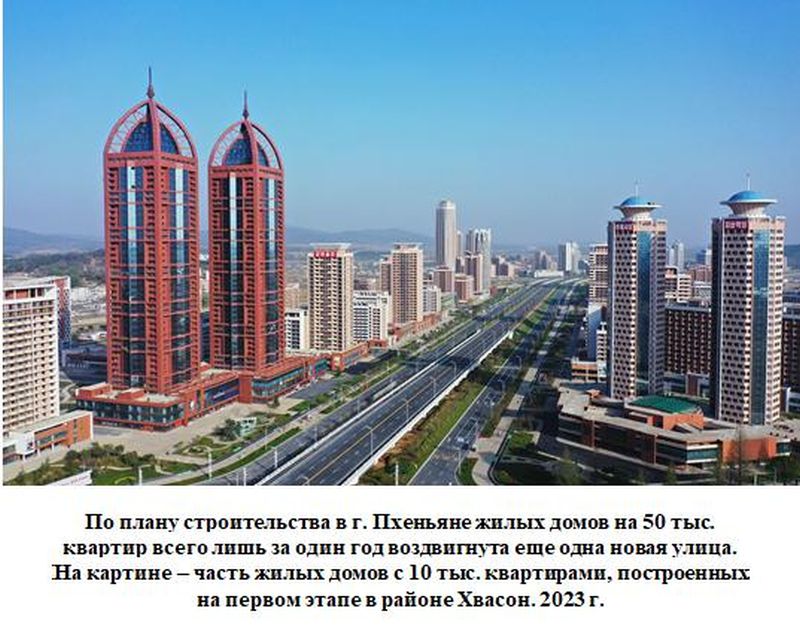 В области сельского хозяйства создана твердая гарантия роста производства зерновых и на фабриках легкой промышленности выпускаются качественные предметы народного потребления. Везде в стране, прежде всего в Пхеньяне, воздвигаются современные жилые дома, как грибы после дождя, и предоставляются народу более хорошие жизненные условия.
