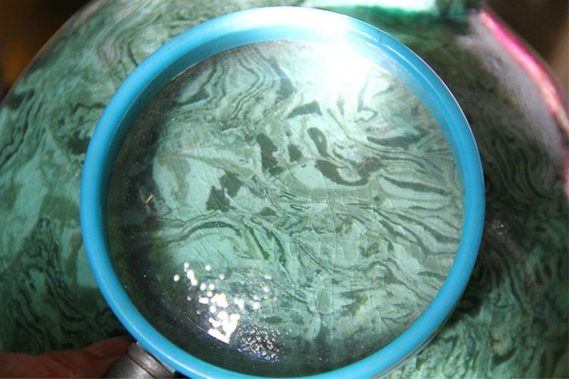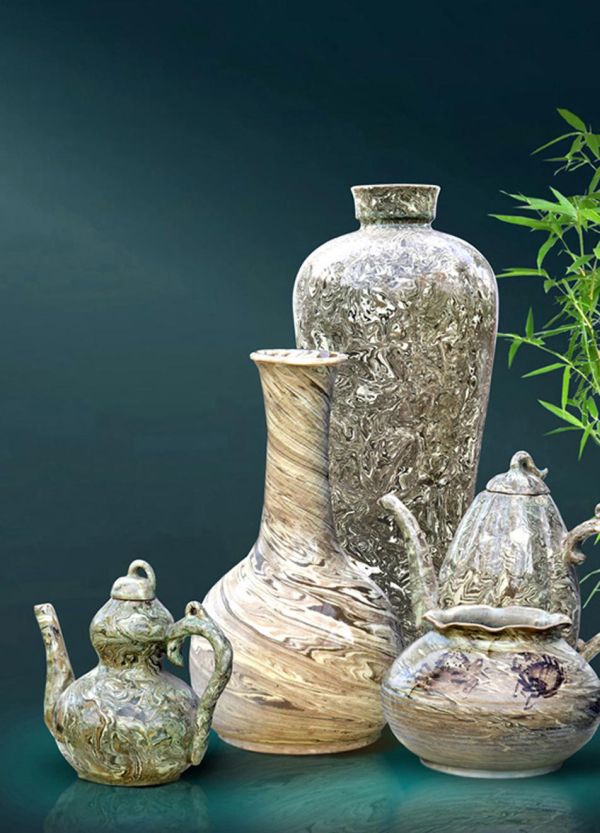 Это керамическое изделие отличается изящностью и своеобразностью формы и цвета, живостью изображения облаков, ветра и зыби, также удачной гармонией неповторяющихся и естественных узоров.