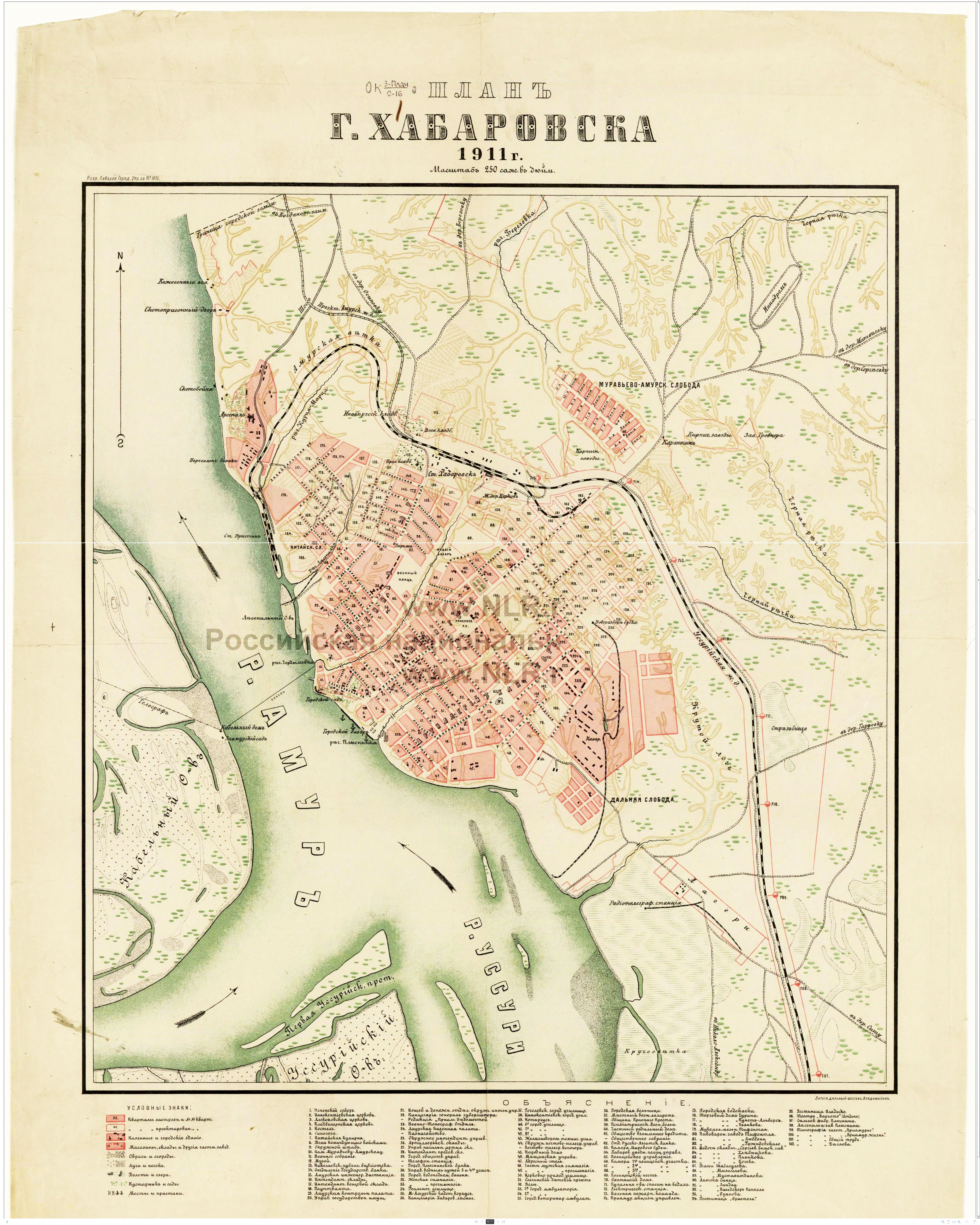 Карта г. Хабаровска, 1911 г. Масштаб 1:21000. Российская национальная библиотека, Санкт-Петербург (http://www.nlr.ru/). Скачать!
