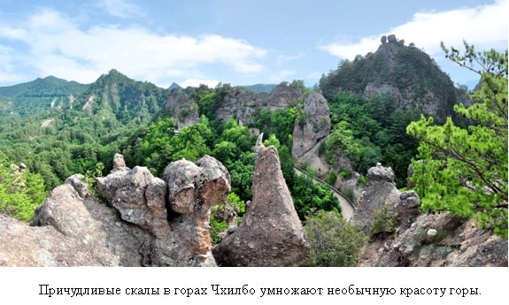 Горы Чхильбо, являющиеся одной из знаменитых гор КНДР, образуют необычный пейзаж из-за причудливых скал и утесов.
