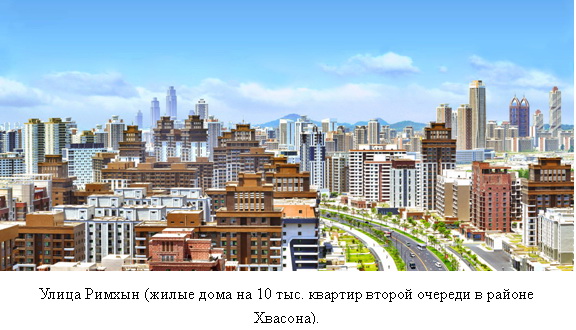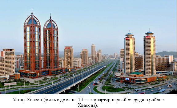 Столица этой страны так изменилась, что даже иностранцы, часто посетившие Пхеньян, не скрывают свое удивление. В частности, нельзя не назвать образцом современного городка район Хвасона, где построены прекрасные жилые дома на несколько десяток тысяч квартир.