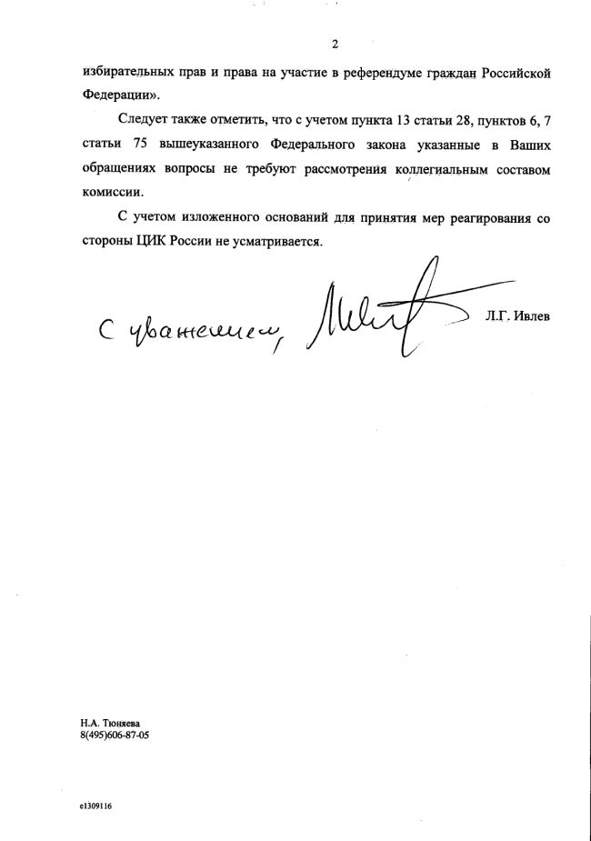 Пронякину К.А. Ответ ЦИК России 05-18/4193