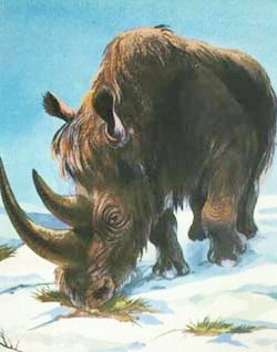 Шерстистый носорог (лат. Coelodonta antiquitatis) — вымерший вид носорогов, обитавший на планете до ледникового периода. Особи шерстистого носорога жили в одиночку, в длину достигали 3,5 метра, в высоту — 1,5-1,6 метра. Особь шерстистого носорога имела два рога, передний — около 1 метра длиной. Из-за глобального похолодания климата шерстистый носорог вымер около 8-ми тысяч лет назад. Наиболее близким из живущих сегодня видов является суматринский носорог.