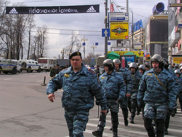 The protesters were ordered to disperse by police who told them the rally was unauthorised, before members of the Omon riot police began to arrest people, hauling them into waiting vans, said witnesses.