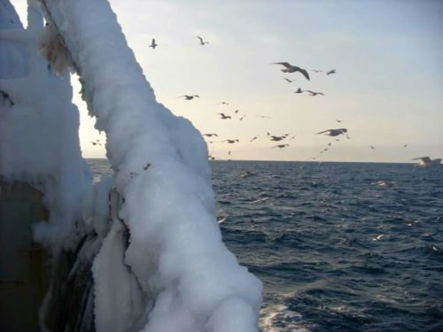 В 1995 году я работал на судне, которое также следовало через Японское море из порта Кореи во Владивосток. Попали в шторм. Резкий перепад температуры, сильный штормовой ветер сделали свое дело: судно буквально на глазах стало покрываться глыбами льда. Обкалывать лед никто и не собирался, так как штормовые волны перехлестывали палубу судна. На палубе слой льда был местами более 50 сантиметров. Благо до Владивостока добрались на четвертый день и благополучно.