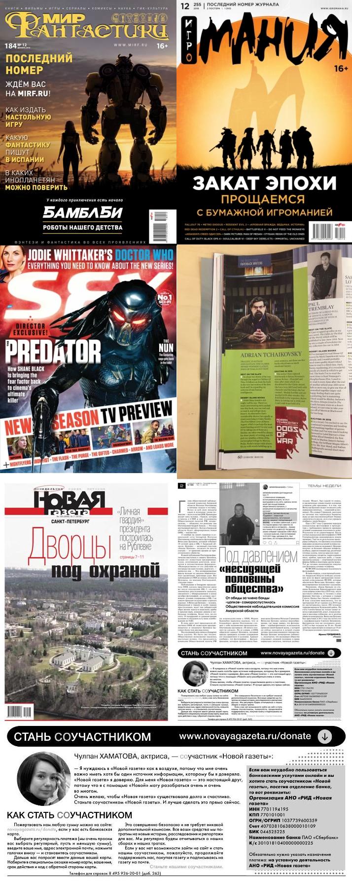 Почему-то я в тот момент вспомнил про спутник Мира Фантастики - журнал "Игромания". Точно! И "Игромания" вышла таким же последним бумажным номером 12\2018 - смотрите фото вверху справа!