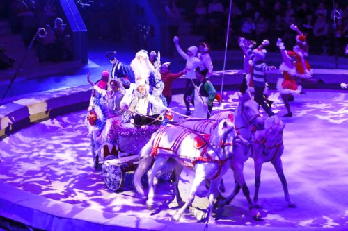 В цирке юных зрителей встретили Дед Мороз и Снегурочка, которым они могли загадать свои самые заветные желания. Дети военнослужащих стали первыми зрителями замечательной новогодней программы «Елка в цирке зажигает огни». Для ребят на арене выступали воздушные гимнасты и акробаты, канатоходцы и жонглеры, дрессированные собаки и медведи, а также прославленные кубанские казаки.