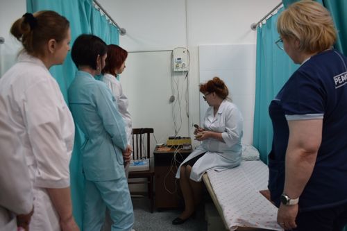 Сейчас у группы медицинских сестер-реабилитологов практика непосредственно в самом отделении. Во время нее они изучают оборудование отделения и учатся пользоваться им для оказания помощи пациентам. Тонкости работы им объясняют специалисты, которые работают в отделении. Впереди у студентов дипломная работа и ее защита, затем они приступят к работе в новом статусе.