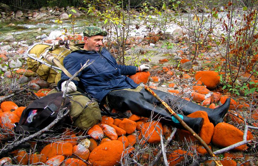 ...Хабаровский ученый, кандидат географических наук Вениамин Иванович Готванский в своей книге «Горы живут, горы зовут» писал, что красные камни имеют тонкий запах роз. Я, очень старался, обнюхал все рядом лежащие камни, но ничего не унюхал, видимо, они пахнут только весной и летом, а сейчас стоит осень.