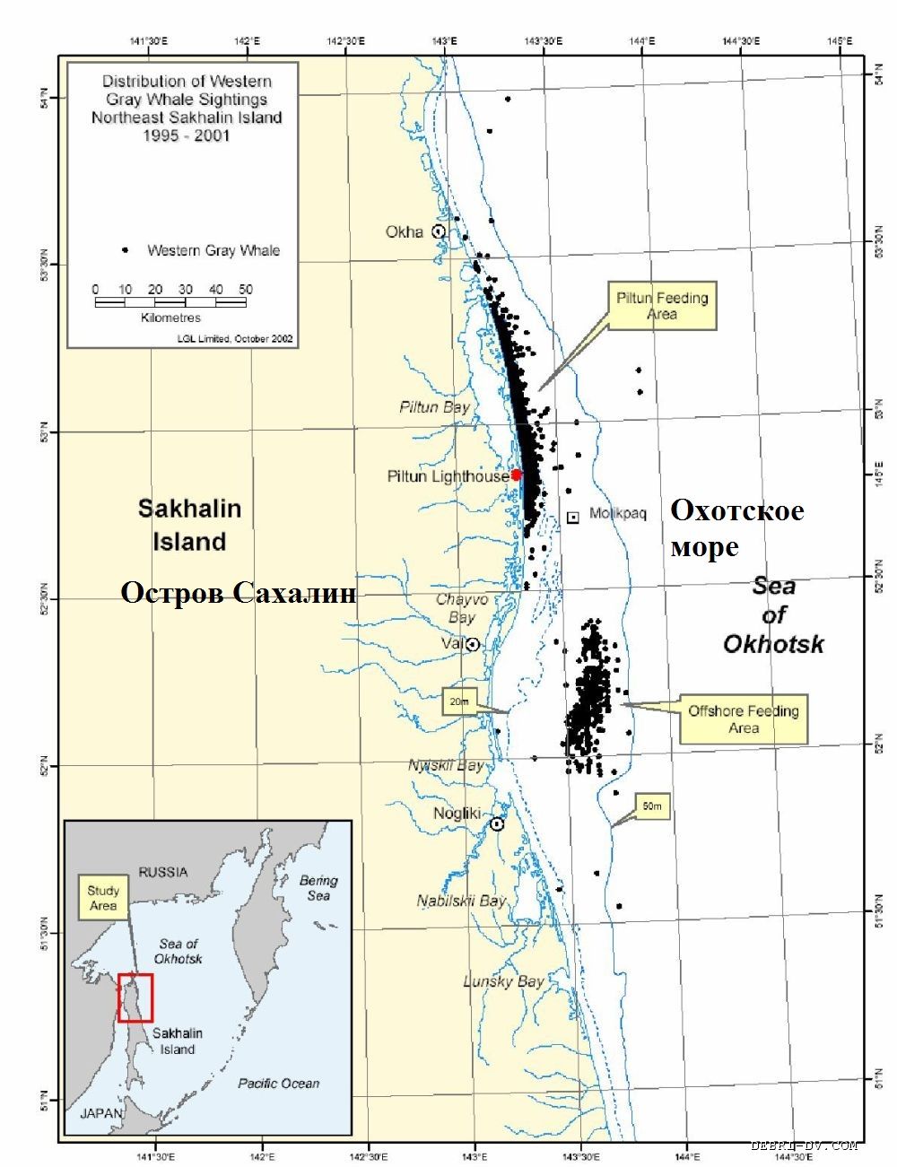 | Районы питания серого кита западной популяции у северо-восточного побережья острова Сахалин |