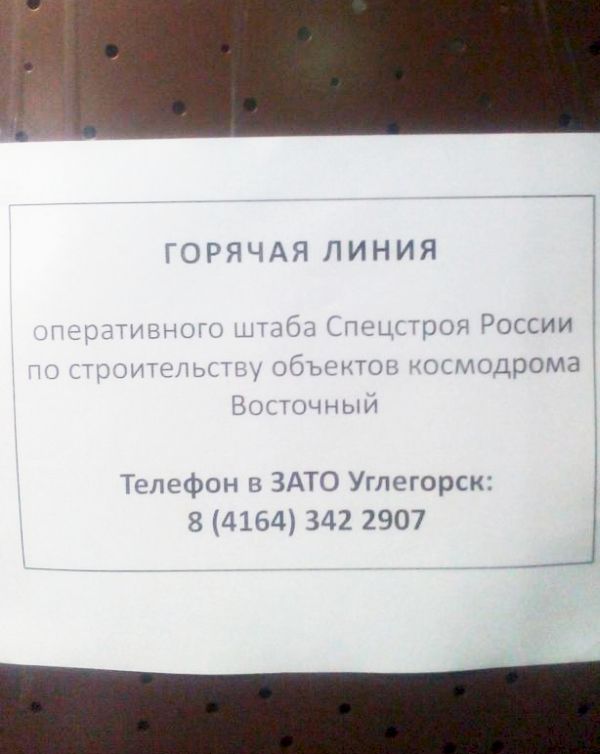 В оперативном штабе Спецстроя России по строительству объектов космодрома Восточный организована «горячая линия», на которую могут обращаться работники для уточнения информации по выплатам зарплаты, а также решения бытовых, социальных вопросов.
