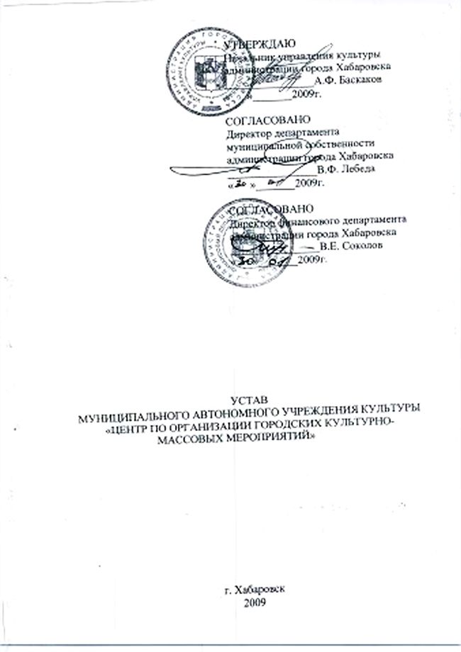 | Устав МАУК Центра по организации городских культурно-массовых мероприятий Хабаровска (обложка) |