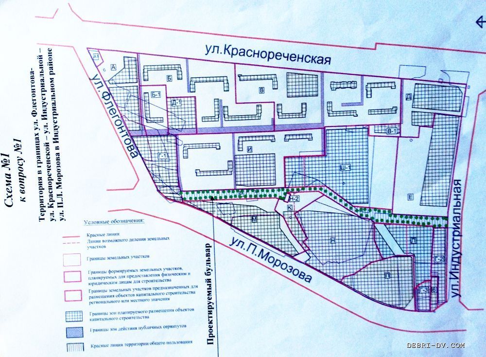 План нового бульвара Москвитина в Хабаровске (обозначен кружками)