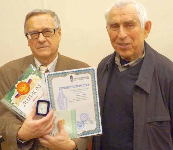 | Литераторы Иван Егорчев (слева) и Борис Сумашедов после вручения в Москве премии (И.Е.) «Серебряное перо Руси» осенью 2015 года. |