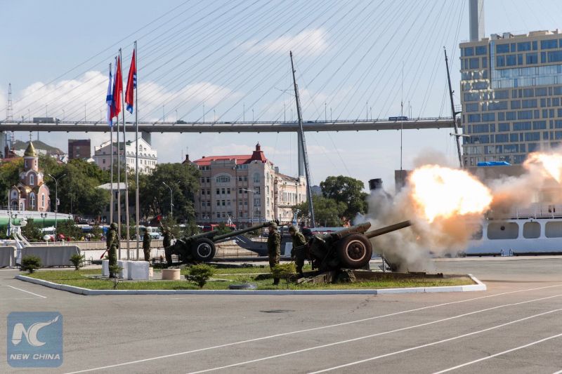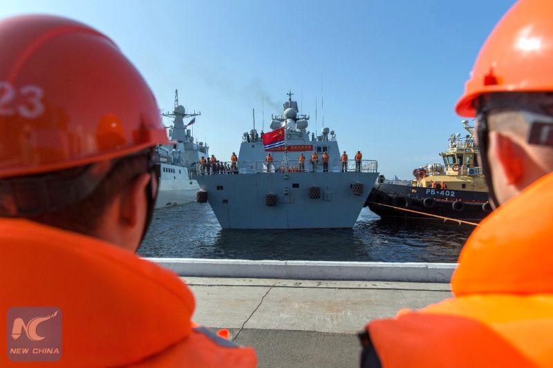 Китайские корабли ВМС НОАК, прибывшие во Владивосток для участия во втором этапе совместных китайско-российских учений «Морское взаимодействие - 2017», были торжественно встречены.