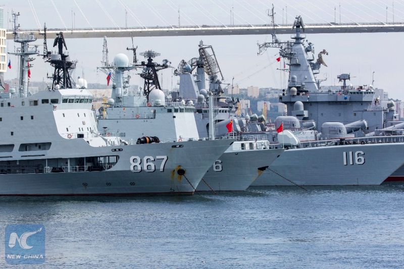 Китайские боевые суда отбыли с военно-морской базы в Циндао 13 сентября и на пути в Россию преодолели Цусимский пролив, Желтое и Японское моря. Синьхуа Новости | Xinhua News, 19.09.17