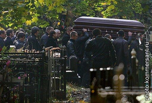 Нести гроб с телом «авторитета» должны были работники ГУП «Ритуал». Но братки всю дорогу, которую, кстати, покрыли розами и гвоздиками, несли его сами. Затем накрыли российским флагом и опустили в могилу.