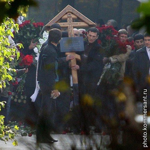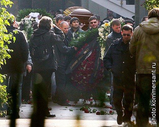 Стражи порядка провожающим своим вниманием не докучали — лишь на дальних подступах к храму стояли небольшие группы бойцов ОМОНа. Впрочем, в их присутствии и не было особой необходимости. Родственники покойного и его ближайшие сторонники — «братья», как они себя называли, сами организовали процедуру похорон довольно четко. Они, например, вежливо, но жестко «проводили» за ворота странного мужчину, взявшегося было распевать во весь голос какие-то псалмы.