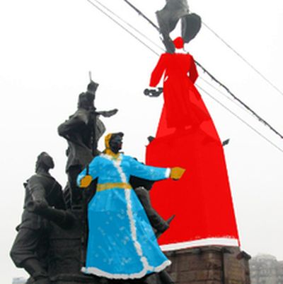 Для наглядного примера автор проекта отправил в совет ветеранов несколько эскизов перевоплощения памятника Борцам за власть Советов на грядущие новогодние праздники. На них, помимо Деда Мороза продемонстрировали пример переодевания одного из красноармейцев на памятнике в Снегурочку. На бойца предлагается надеть голубую женскую шубу, а также накрасить ему губы и брови.