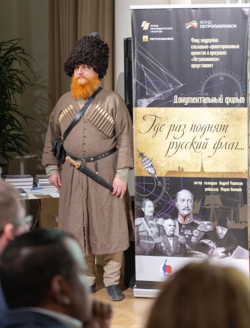 Перед показом фильма работники музея провели небольшую экскурсию для гостей по залам Николаевской эпохи, задав нужное настроение и погрузив зрителей в исторические реалии того времени. «Погружению» способствовали также реконструкторы, одетые в военную форму российской армии середины XIX века - это члены организации «Росрекон», снимавшиеся в фильме «Где раз поднят русский флаг…». Они встречали гостей на входе и с удовольствием фотографировались с посетителями. Гости премьеры получили в подарок книги, изданные Фондом «Петропавловск» - научную монографию «Албазинский острог» и детскую книгу «Записки о Дальнем Востоке», а также диски с предыдущим фильмом Фонда - «Албазинские скаски».