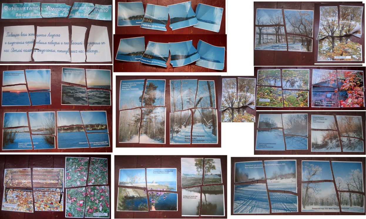 Я публикую здесь фотографии моей изорванной выставки. И если жители Хабаровска, Владивостока и Комсомольска-на-Амуре захотят распечатать и провести у вас обе мои запрещенные выставки, я пришлю вам оригиналы этих своих фотографий не только Амурска, но и всего края.