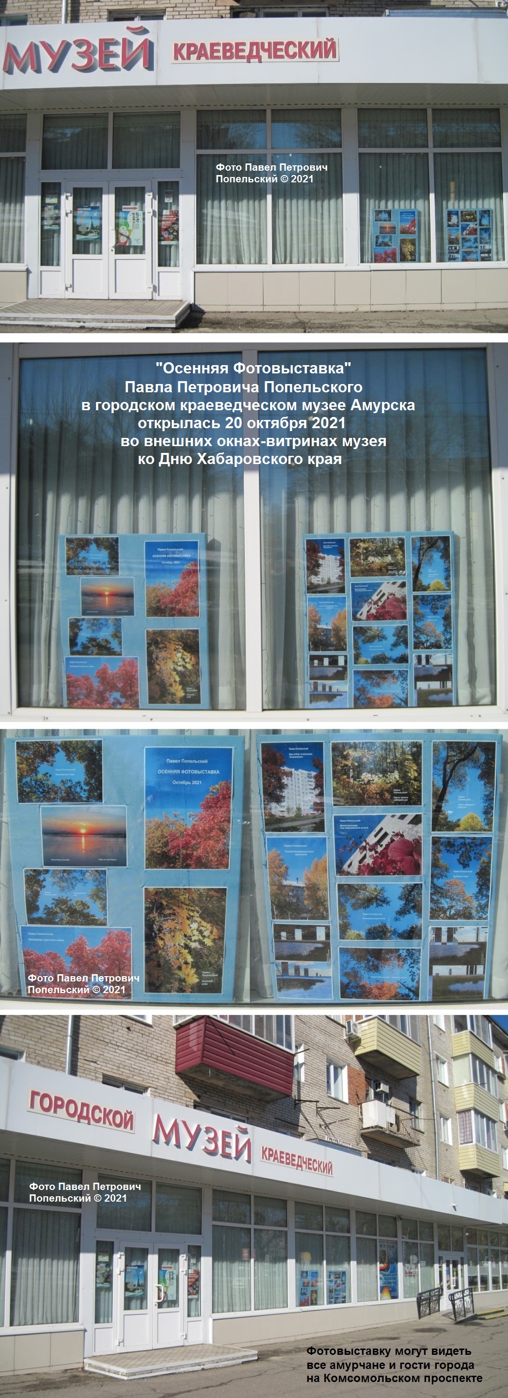 Десятая "Осенняя фотовыставка" Павла Петровича Попельского Октябрь 2021 в оконных витринах краеведческого музея Амурска ко Дню Хабаровского края