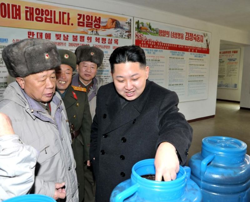 | Ким Чен Ын заботится о питании воинов. Январь 2012 г. |