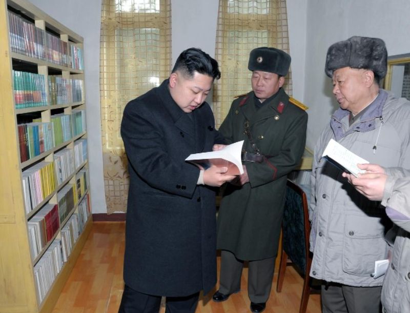 | Ким Чен Ын ознакомляется с книгами для военнослужащих. Январь 2012 г. |