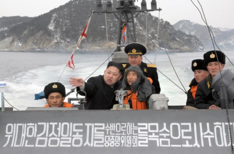 | Ким Чен Ын руководит тактической подготовкой моряков. Февраль 2012 г. |