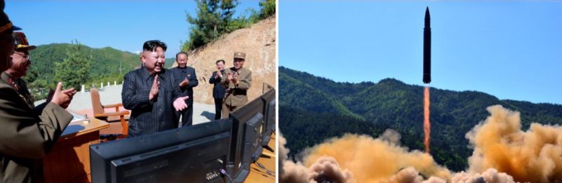 | Ким Чен Ын руководит на месте всем процессом испытательного запуска МБР «Хвасон-15». Ноябрь 2017 г |