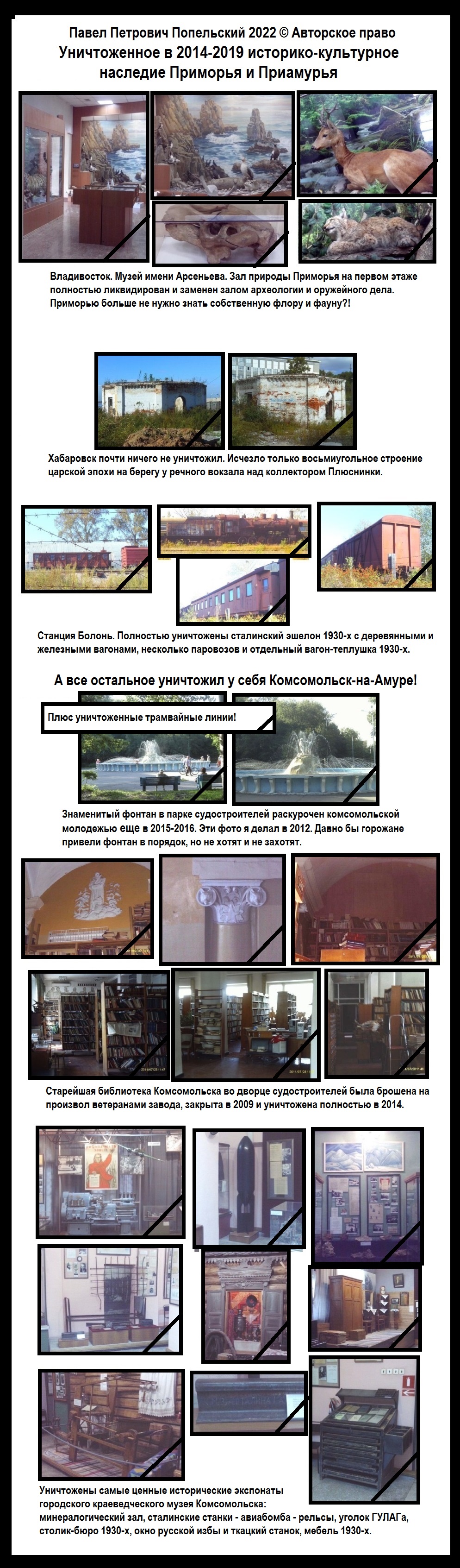 А все остальное уничтожил у себя Комсомольск-на-Амуре! Комсомольск в 2020-2022 вообще стал очень злым, ненавидящим других городом, его интеллигенция говорит приезжим гадости и хамит в других городах, чему я был лично свидетелем недавно в Амурске. Комсомольск очень сильно опустился. С его интеллигенцией лучше не общаться и не здороваться.